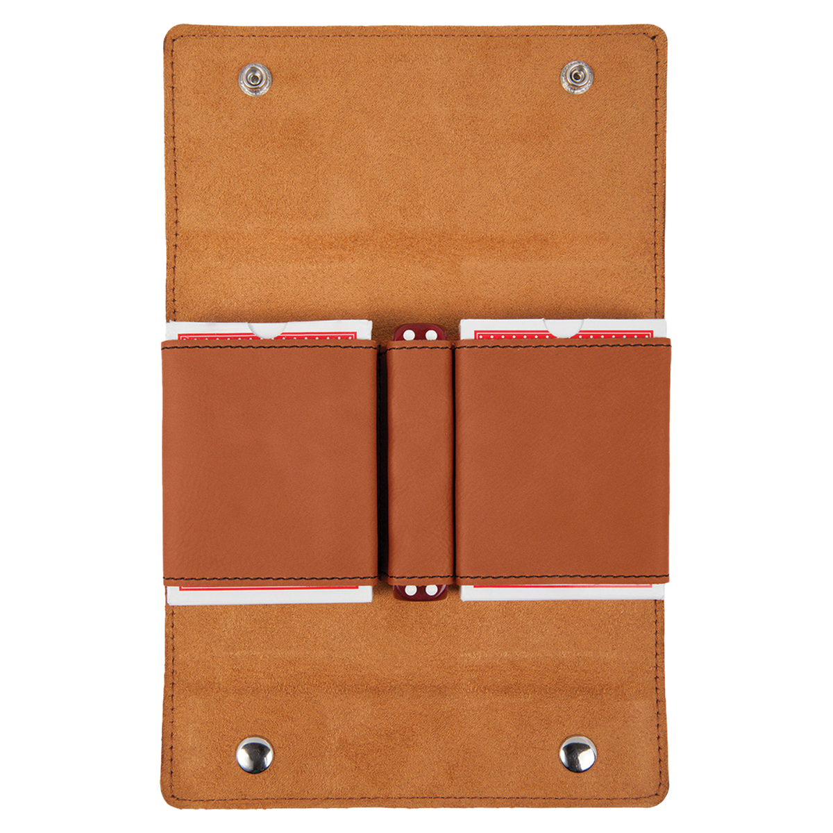 Leatherette offers the look and feel of genuine leather at a fraction of the price. This richly textured, synthetic material is water resistant, easy to clean and durable enough for the rigors of daily use. The high quality workmanship of each leatherette piece is sure to impress every recipient with its elegant individuality. Set comes with 2 decks of cards and 5 dice. Laser engraved leaving an elegant black imprint color. The inside of the set is faux suede. Individually Packaged.