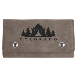 Leatherette offers the look and feel of genuine leather at a fraction of the price. This richly textured, synthetic material is water resistant, easy to clean and durable enough for the rigors of daily use. The high quality workmanship of each leatherette piece is sure to impress every recipient with its elegant individuality. Set comes with 2 decks of cards and 5 dice. Laser engraved leaving an elegant black imprint color. The inside of the set is faux suede. Individually Packaged.