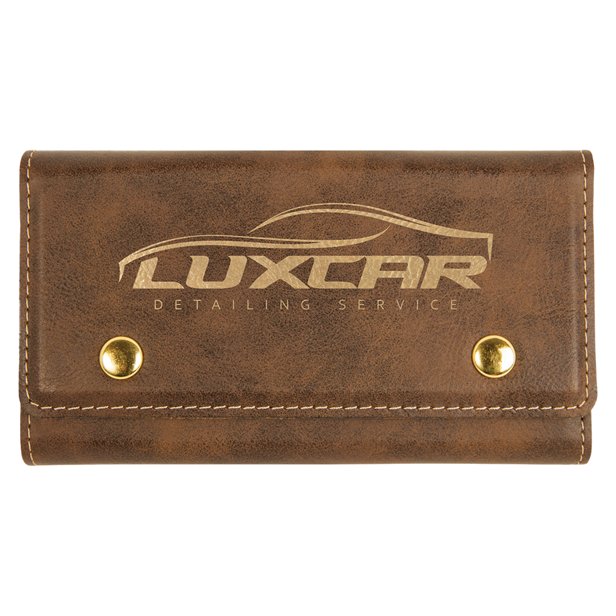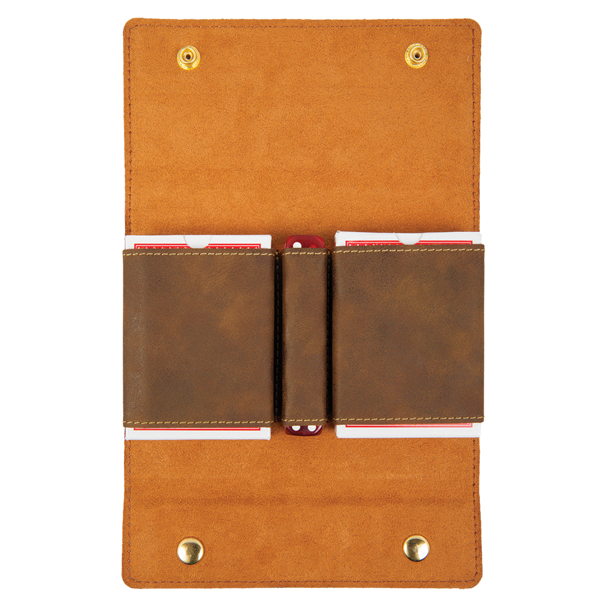 Leatherette offers the look and feel of genuine leather at a fraction of the price. This richly textured, synthetic material is water resistant, easy to clean and durable enough for the rigors of daily use. The high quality workmanship of each leatherette piece is sure to impress every recipient with its elegant individuality. Set comes with 2 decks of cards and 5 dice. Laser engraved leaving an elegant gold imprint color. The inside of the set is faux suede. Individually Packaged.